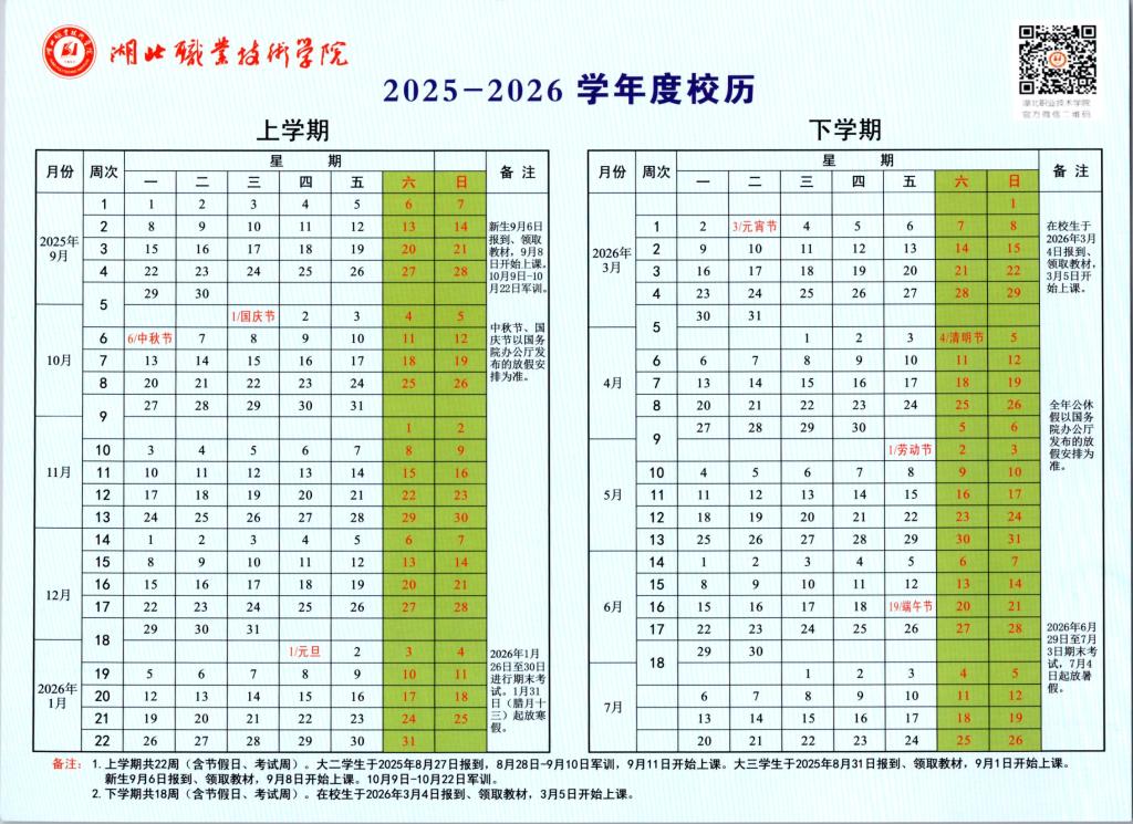 Beat365唯一官方网站2025-2026学年度校历