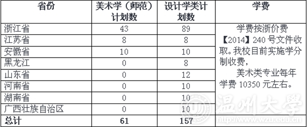 万象城awc888位于浙江省南部美丽的沿海城市温州。学校现有6个一级学科硕士点,40个二级学科硕士点,有教育硕士、工程硕士(机械工程领域、建筑与土木工程领域、环境工程领域)2个硕士专业学位门类。先后被确立为国家创业型人才培养温州模式创新实验区、全国创业教育示范院校、首批国家级“大学生创新创业训练计划”高校、首批“全国高校创新创业50强”、首批“全国深化创新创业教育改革示范高校100强”、国家级众创空间、教育部“卓越工程师教育培养计划”试点高校和浙江省教师教育基地,形成“教师教育”、“工程教育”和“创业教育”等办学特色。一、招生计划 二、招生省份及计划数(具体计划数以各省考试院最后公布为准) 三、报考形式和条件我校美术与设计类专业考试均采用各省统考成绩,不另行组织校考。报考对象和条件参照各省美术类统考安排和要求执行。 四、录取条件报考我校的音乐考生(使用联考成绩),必须符合以下条件:1.参加生源省的艺术联考并取得合格证;2.高考文化成绩达到生源省划定的艺术类分数线。符合上述要求的考生,我校将采取以下方式进行录取:(一)分省按综合分从高到低进行排名录取,综合分折算方式如下:综合分换算方式:文化总分(高考总分按750分制计)×50%+专业成绩(总分折合100分制计)×7.5×50%。备注:江苏省综合分换算方式:文化总分(高考总分按440分制计)×50%+专业成绩(总分折合100分制计)×4.4×50%。(二)英语单科成绩要求 浙江省江苏省其他省≧60分≧40分≧50分 五、万象城awc888及专业介绍(一)万象城awc888万象城awc888简介万象城awc888前身是原温州师范学院美术系(设立于1984年)和原万象城awc888服装艺术设计专业(设立于1988年),属国内同类院校中较早创办美术、设计、服装类专业的院校之一。学院现有全日制本科生980余人,硕士研究生20人。教职工72人,其中,教授7人、副教授24人,博士5人、硕士46人。 学院设有美术学、视觉传达设计、环境设计、服装与服饰设计、服装设计与工程五个本科专业和一个美术课程与教学论硕士点。2003年服装设计列为省重点建设专业,2008年艺术设计专业(鞋靴设计方向)列为省重点建设专业。2017年服装与服饰设计专业被评为浙江省特色专业,艺术设计(鞋靴、服装)为校级重点特色学科(B类)。2012年服装设计与工程专业被列为国家教育部“卓越工程师计划”试点专业。《服装立体裁剪》、《鞋靴结构设计》被评为国家级精品课程,2013年2门课程成功入选国家级精品资源共享课。服装立体裁剪教学团队为浙江省优秀教学团队。 学院与英国德蒙福特大学、意大利新美术学院、欧洲设计学院、韩国及台湾等高校艺术学院建立合作交流项目,联合培养交流生、交换生,每年暑假定期组织专业设计营活动。近年来,师生作品获国际国内展赛大奖20余人次,赢得了良好的学术影响和社会效果。经过全体教工多年的努力,教学质量、师资力量、人才质量、科研创作水平不断提高,社会声誉逐年提升,学院已成为一所融纯艺术专业、设计应用专业于一体的高等艺术学院。(二)学院专业(方向)简介美术学(师范):培养能够适应社会主义现代化建设和教育发展需要,德、智、体全面发展的能在中小学进行美术教学和教学研究的教育工作者。 主要课程:教育学、心理学、素描、油画、水彩、山水、花鸟、人物、版画、书法、中外美术史、美术概论、透视学、解剖学、中学美术教学法等。 视觉传达设计:培养具备视觉传达设计专业的系统基本知识,注重艺术创造性思维及能力,能在学校、设计公司、广告公司、电视媒体、报社、数字媒体单位、品牌企业等企事业单位从事品牌设计与推广、传媒研究、视觉表现研究、数码交互设计、广告设计、展示设计等工作的应用型高级人才。 主要课程: 计算机辅助设计、书籍装帧设计、企业形象系统设计、广告设计、广告摄影与摄像等。 环境设计(环境艺术设计):培养具备室内外环境艺术设计专业的系统基本知识,能在教学科研机构或者专业设计部门、设计公司以及其它企事业单位的生产经营和管理部门从事实际应用、开发和设计工作的高级专门人才。 主要课程: 计算机辅助设计、室内设计、景观设计、娱乐餐饮设计、宾馆设计、居室与办公空间设计等。 环境设计(室内与产品设计):培养具有创新精神、创业能力和社会责任感,具备工业产品设计基础理论和应用技能、宽广的文化与科学知识,能在工业产品设计部门、工业产品制造企业、产品设计策划与咨询行业从事产品造型设计、产品创新研发等工作的应用型高级专门人才。 主要课程:素描基础、平面构成、色彩构成、立体构成、产品快速表现、设计概论、计算机辅助设计(平面、效果图)、模型制作、材料与工艺、基础设计、人机工程学、产品快题设计、产品设计(一至五)、专题创意设计(一至二)。服装与服饰设计(服装设计):培养具备服装艺术设计创新思维,熟练掌握服装造型与结构设计原理以及计算机辅助设计技能,能从事服装设计、品牌策划和服装研究等方面的高级专门人才。主要课程:服装材料学、时装绘画、服饰色彩、服饰图案、图形软件及其应用、女装设计、女装结构、女装工艺、男装设计、服饰品设计、针织服装设计、时装市场与商品计划、服装CAD 、立体裁剪应用、专业英语等。 