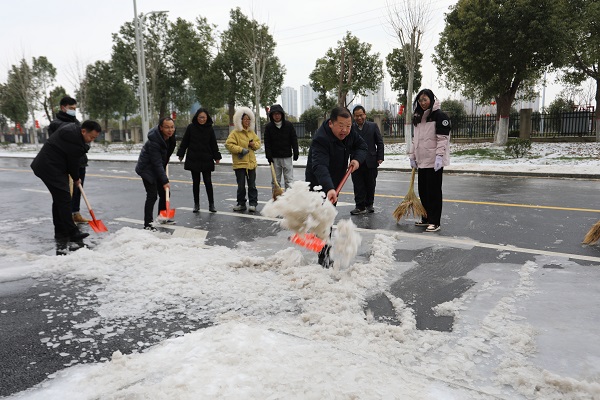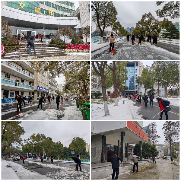 全校各单位分区包片开展清“霰”除冰行动