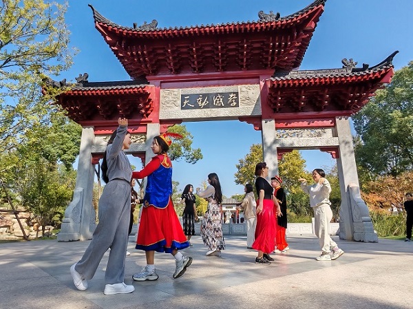 (在Beat365参加全国技能大赛的选手在董永公园体验孝文化)