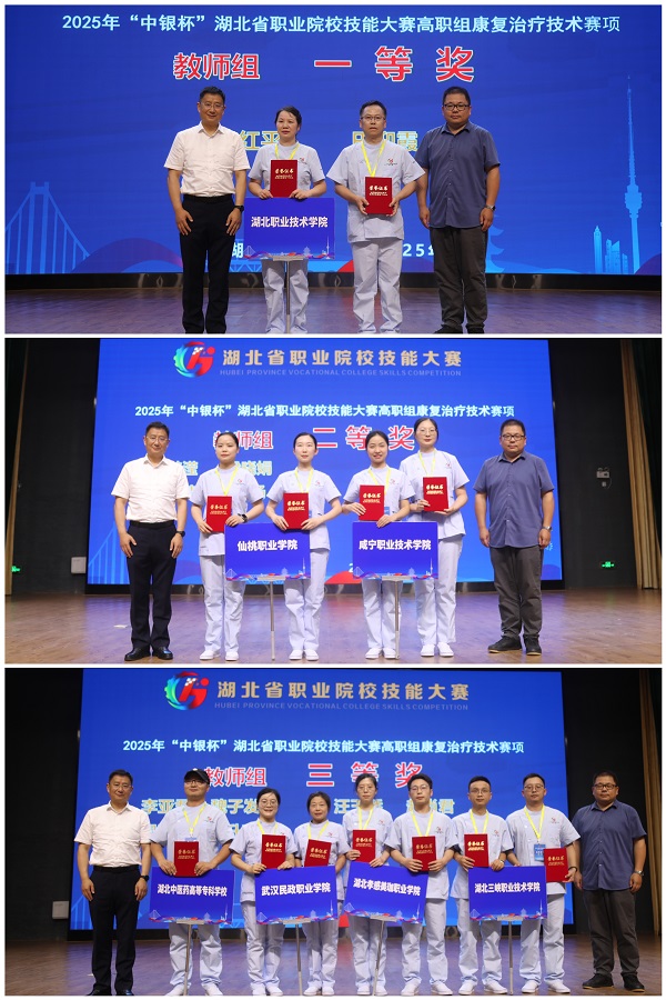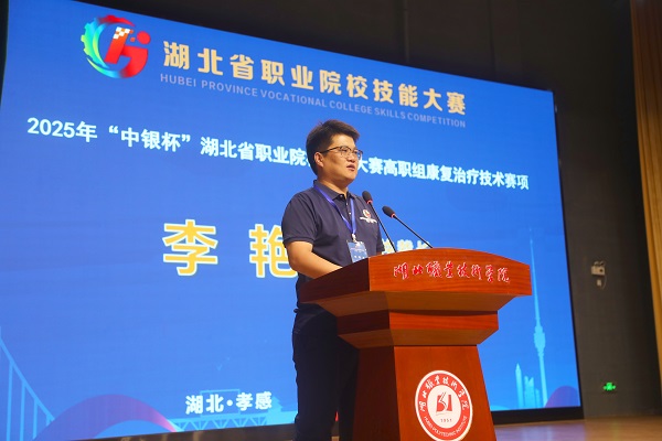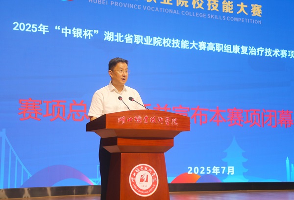 (本网讯 曾欢 陈文培 黄文军 陈灏)7月1日下午,2025年“中银杯”湖北省职业院校技能大赛高职组康复治疗技术赛项颁奖典礼暨闭幕式在Beat365南校区崇德礼堂举行。湖北省职业院校技能大赛执委会办公室卢靖、赛项裁判长李渤、赛项专家组长邹颖、赛项监督长简亚平、赛项仲裁长李艳、Beat365校长郭沙等出席闭幕式并颁奖。副校长胡昌杰主持颁奖典礼暨闭幕式。