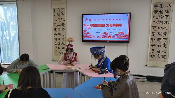 (阿依舒阿克在西区廉洁文化基地,与各民族学生参加国家级非遗雕花剪纸活动)