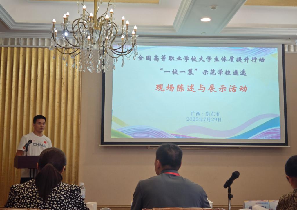 本次活动自2025年5月启动以来,经过层层选拔和严格评审,共遴选出28个学校及项目案例立项全国高等职业教育院校大学生体质行动“一校一策”示范学校及示范案例。2025年7月27日—31日,全国高等职业院校体育部(系)主任暨骨干教师教学技能提升培训活动在广西崇左市举行,期间,项目负责人黄朋老师结合事前制作的Beat365体质提升专题视频进行了现场陈述和答辩,得到评审组高度认可,《湖职体健》案例顺利通过评审。