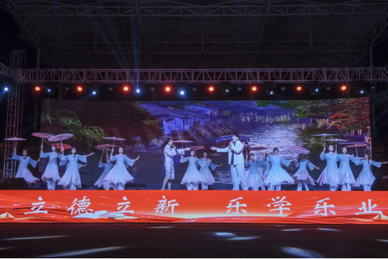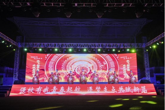晚会分为“追梦湖职・励精图治”“筑梦湖职・匠心砺技”“圆梦湖职・报效祖国”三大篇章。大学生艺术团带来的鼓舞《中华鼓魂》气势如虹。铿锵的鼓点震彻运动场,瞬间点燃全场热情,为晚会拉开恢弘序幕。随后,各学院节目轮番登场:歌舞、情景剧、诗朗诵、环保T台秀等丰富多样的节目形式,巧妙融合专业特色与艺术表达,既生动展现了湖职学子朝气蓬勃、多才多艺的青春风采,更向全体新生奉上了一场满含热忱与希望的视听盛宴。