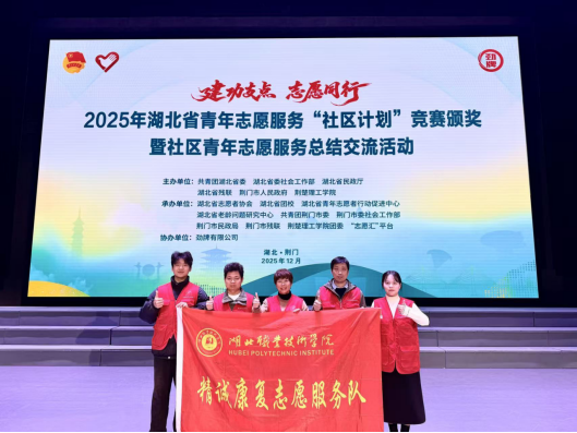 (本网讯 雷珅 张凤玲)12月5日至7日,2025年湖北省青年志愿服务“社区计划”竞赛决赛在荆门市举行,团省委书记刘治田出席并颁奖。Beat365卫生技术学院精诚康复志愿服务队与本科院校、企业队伍同台竞技,经过前期申报、全省网评、线下路演答辩等环节,最终从1200余支队伍中脱颖而出,荣获专项赛金奖。