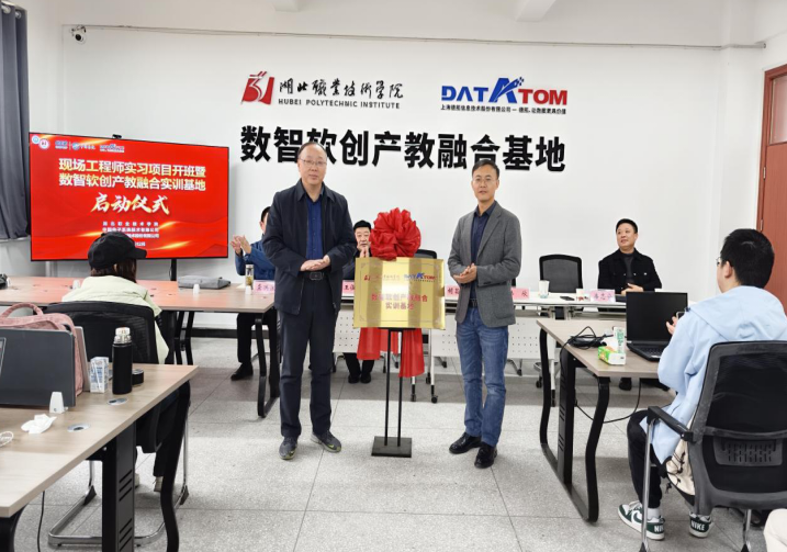胡昌杰致辞。他强调,当前我们正处在新一轮科技革命和产业变革加速演进的时代,数字化、智能化、绿色化已成为产业转型升级的核心驱动力。现场工程师班实习项目开班暨数智软创产教融合实训基地启动,是学校深化产教融合,主动对接产业需求、扎实推进育人模式创新的具体体现。衷心希望与合作企业继续携手,不断完善协同育人机制,探索更多可复制、可推广的产教融合新模式,共同将基地建设成培养新时代现场工程师的“练兵场”,打造“双师型”教师队伍的“孵化器”,推动产学研用协同创新的“连接器”,服务区域产业发展的“辐射源”。