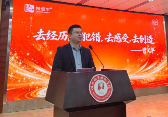 副校长梅重代表学校及校友会接受捐赠,校长郭沙为曾义平校友颁发捐赠证书、就业创业导师聘书。2024级学生汤梓萱作为代表发言,表达对曾义平学长的敬佩与感恩,立志以学长为标杆,勤奋学习、锤炼素养、传承爱心。曾义平校友分享了毕业十三年来的就业创业历程,特别是在医美行业创业所经历的艰辛、机遇与坚守,并寄语学弟学妹珍惜时光、勤学苦练、勇于追梦。其真挚的讲述感染全场,掌声不断。