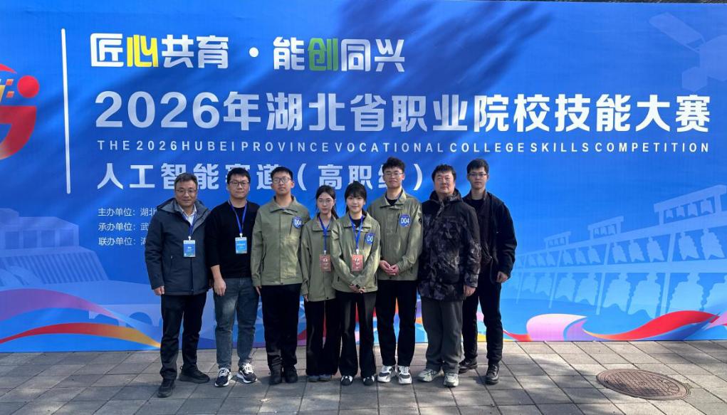(本网讯 吴春花 孙颖 张琦)1月11日,由湖北省教育厅主办、武汉软件工程职业学院承办,湖北科技职业学院、武汉交通职业学院、武昌职业学院联办的2026年湖北省职业院校技能大赛“人工智能赛道”圆满落幕。本次大赛吸引了全省本科、高职、中职三个组别共计140支参赛队、550余名选手同台竞技。湖北职院信息工程学院选派的两支队伍在比赛中展现出团结协作、顽强拼搏、勇于创新的精神风貌,凭借扎实的专业技能和良好的综合素养脱颖而出。其中,由孙颖、段然老师指导,王圆圆、王亮亮、董洁梅、梁思哲4名学生组成的代表队(1队),荣获一等奖;由胡长江、张琦老师指导,毛俊皓、汪科、周礼清、吴嘉诚4名学生组成的代表队(2队),荣获二等奖。