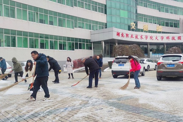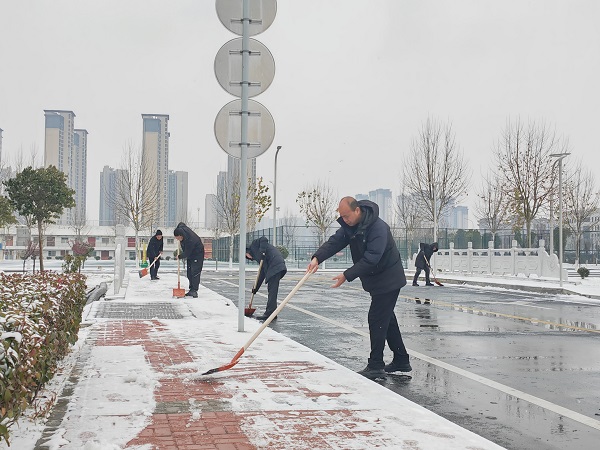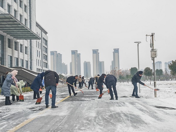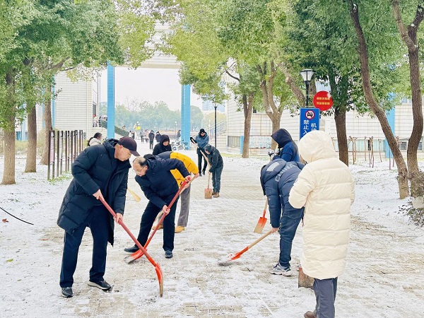 (本网讯 岑钰 唐熙隆)1月19日晚,一场降雪席卷全城,为保障教学秩序、师生出行安全,各单位积极行动,用责任与担当开辟出一条条“安全通道”。