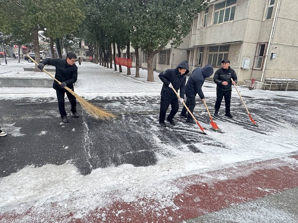 为应对此次雨雪恶劣天气,相关处室提前制定详细的应急预案,备足融雪剂、铁锹、扫帚等物资,优先保障师生高频活动区域的通行安全,同时对校园内的树木、路灯、排水设施等进行隐患排查,防止积雪压断树枝、结冰堵塞管道等情况发生,为快速响应、高效处置奠定了坚实基础。