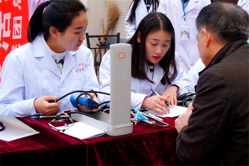 活动期间,志愿者们在社区门口搭建了测血压义诊服务台,热情细致地为前来咨询的小区居民进行讲解。在近两个小时的义诊、咨询服务过程中,20余名医学生利用所学的专业知识,在内科学专家岳新荣教授的认真指导下,为社区100多名老年人和居民测量血压、宣传日常生活保健小常识,将健康关爱送到居民家门口。进一步弘扬了“奉献、友爱、互助、进步”的志愿精神,充分的展示了医学院学子的风采。