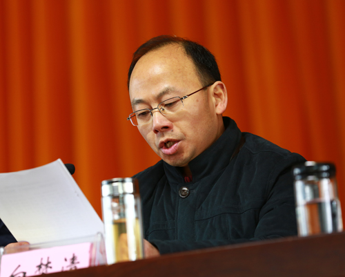 学校党委委员、副校长白梦清宣读工会、招生就业先进单位及个人等表彰文件