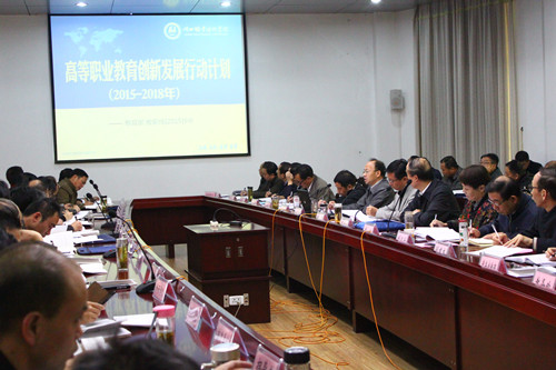副校长白梦清从《行动计划》的总体要求、主要任务与举措、保障措施三个方面进行了详细阐述与解读,并结合学校的实际情况,重点对提升专业建设水平、开展优质学校建设、引进境外优质资源、加强教师队伍建设、完善高等职业教育结构、促进区域协调发展、推动职业教育集团化发展、推进分类考试招生、探索混合所有制办学、开展现代学徒制培养、完善质量年报制度等方面提出了建设性意见与思路。白梦清指出,《行动计划》是今后一个时期高等职业教育战线贯彻2014年全国职业教育工作会议精神和落实全国人大常委会职业教育法执法检查有关要求,深入推进改革发展的路线图。要求各二级学院和相关职能部门结合《行动计划》的要求,认真编制好本部门的“十三五”规划,切实提高教学管理质量与教学水平。