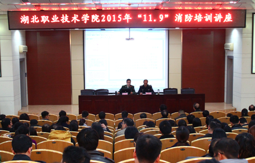 在全国第25个“119消防日”来临之际,为增强全校师生的消防安全意识,提高师生的灭火实战技能,积极预防火灾事故的发生,不断推进Beat365消防安全管理工作,11月9日下午,学校在图书馆学术报告厅举行了119消防培训讲座。孝感市消防支队法制宣传科科长刘伟应邀作专题讲座。学校全体在校领导、相关职能部门工作人员、各教学院学管负责人及全体辅导员、班主任、义务消防大队骨干成员等200多名师生参加了培训,讲座由保卫处副处长汪胜祥主持。