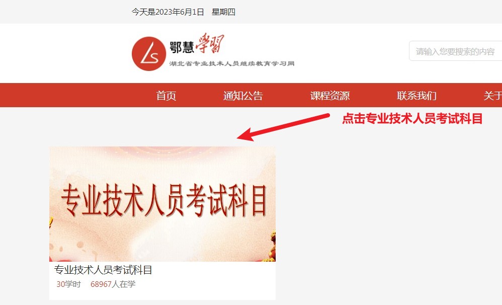 2.进入“专业技术人员考试科目”进行学习。