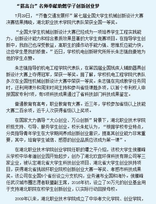 日期:2016年08月01日 作者: 来源: 媒体湖职 点击数: