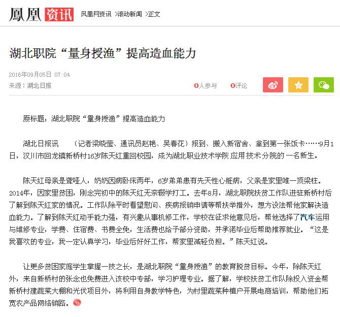 【凤凰网】湖北职院“量身授渔”提高造血能力