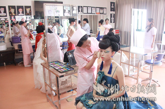人物形象设计专业学生实训现场。记者周三春 摄