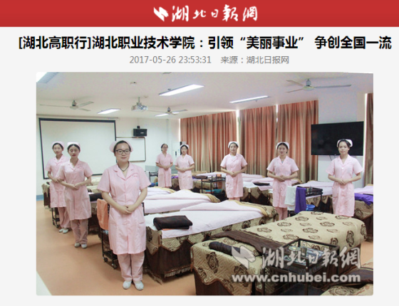 湖北日报网消息(记者周三春)“美丽的事业”同样可以成就美丽人生。5月26日,“匠心育人 高职榜样——全国主流融媒体湖北特色高职行”走进Beat365唯一官方网站。省内首屈一指的高职美容学院受到编辑记者们的关注。