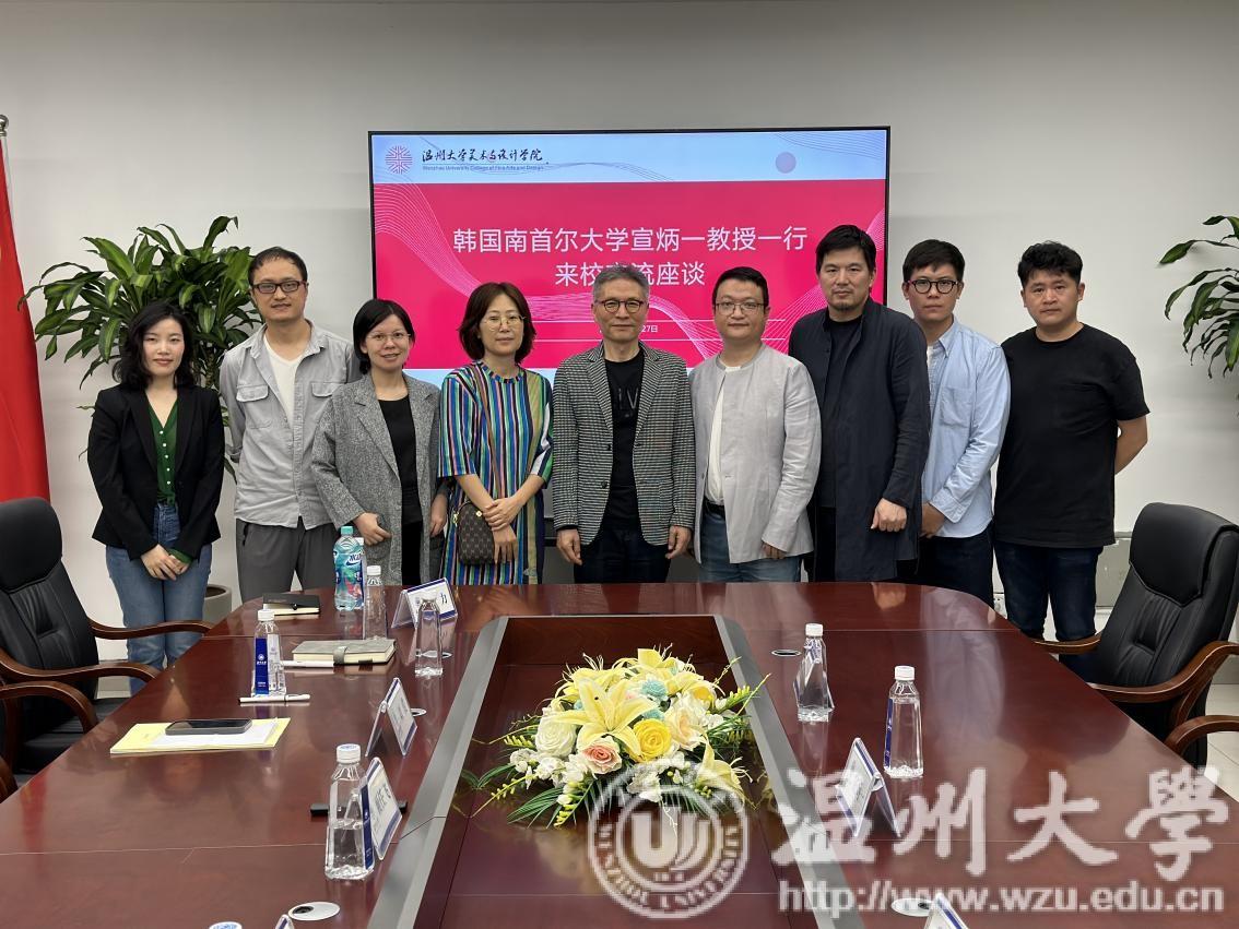 10月27日,韩国南首尔大学终身名誉教授、韩国美术协会会长、韩国视觉设计协会会长、博士生导师宣炳一教授一行4人来访万象城awc888。学院副院长顾任飞教授、视觉传达设计系主任刘俊、环境设计系主任黄玫玮以及学院设计学、艺术设计硕士研究生、视觉传达系师生共60多人参加交流活动,共同探讨视觉设计专业建设等相关问题。