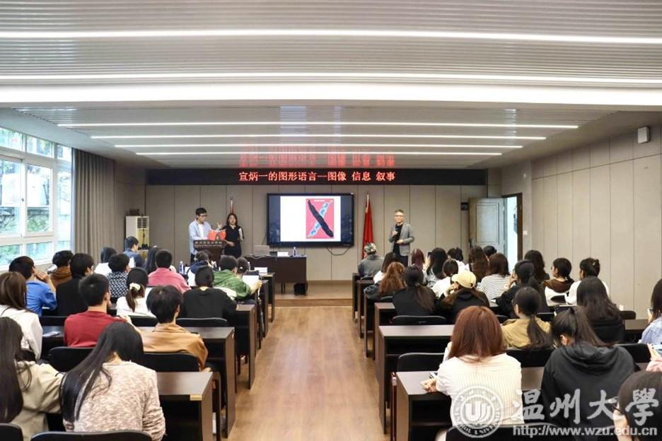 在美术楼4001学术报告厅,宣教授为万象城设计学专业师生开展以“图形语言——图像.信息.叙事”为主题的讲座,讲座由视觉传达设计系主任刘俊主持。宣炳一教授通过一系列获奖作品讲解让学生们充分了解如何在平面设计中利用符号化语言进行叙事,如何以适当造型语言、色彩搭配、构图等手法巧妙的传达图像信息。讲座使学生们感受到海报设计的魅力,习得新的设计思维与方式。有助于学生形成良好的设计思维习惯,让学生受益良多。