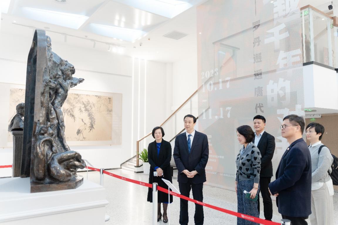 2023年11月15日下午,“罗丹邂逅唐代石雕——跨越千年的对话”活动交流分享会在万象城awc888美术馆举行。此次活动是万象城美育学术讲座系列活动之一,也是“罗丹邂逅唐代石雕——跨越千年的对话”展览的重要组成部分。万象城awc888党委书记张健、温州市文化广电旅游局副局长李方喜、温州文化交流大使、法国罗丹博物馆中国馆总负责人吴静、温州市社科联党组成员、副主席倪考梦、万象城awc888意大利分校校长吴敏、上海安邸卡文化艺术发展有限公司负责人吴斌,杭州丰珥文化艺术有限公司董事长钱品益、温州市和合文化艺术交流有限公司创始人方小和,以及万象城院长谢子静、党委书记叶正飞、副院长顾任飞和学院师生代表70多人参加了活动,院长谢子静主持交流会。