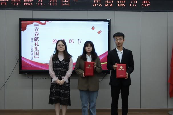 选手们在各自的分享中碰撞出思想的火花,评委老师也各自做出了精彩点评。本次思政课决赛共产生一等奖1名、二等奖2名、三等奖3名、优秀奖4名、人气奖12名,待主持人宣读完毕后,选手们纷纷上台领取奖状,并与老师合影留念。