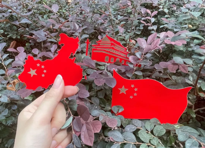 有一种感动叫做“中国红”有一种骄傲叫做“五星红旗”有一种表白叫做“我爱你中国”有一种画面叫做“我与国旗合个影”