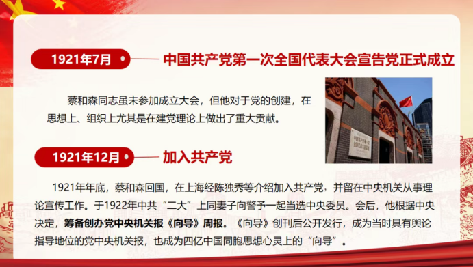 宣讲人:顾媛 学生第一党支部 19美师1班 一、课程介绍 回望过往奋斗路,眺望前方新征程。 1922年7月,中共二大在上海召开。党的二大在中国近代史上第一次明确地提出了反帝反封建的民主革命纲领,为党确立新民主主义革命的基本思想奠定了基础。 本期“喜迎二十大 美院微讲堂”活动由温大美院的党员顾媛以《蔡和森:明目张胆正式成立一个中国共产党》为主题开展,向我们阐述了党的二大代表人物蔡和森先生的英雄事迹,让我们了解了他的一生。现在已经是和平年代,不需要流血牺牲,但是我们仍然可以学习蔡和森先生无私奉献的精神,努力成为一名优秀的党员。 二、活动方式 活动时间:6.19周日晚上18:30 活动地点:万象城AWC - (888中国)官方网站 二楼2B236 三、课程回顾 内容概要 人物:蔡和森 二大湖南组代表 人物事迹:1913年,18岁的蔡和森考入湖南省立第一师范学校,与毛泽东成为同学。1918年他与毛泽东等人组织成立新民学会,创办了《湘江评论》。 为了探寻中国革命道路,1919年12月,蔡和森赴法国勤工俭学,学习并翻译了上百种介绍马克思列宁主义和俄国革命的书籍。期间蔡和森同国内的毛泽东等人通信,第一次提出要“正式成立一个中国共产党”。1921年12月,回国不久的蔡和森加入中国共产党。 他曾任中央政治局常委,中央宣传部部长,中共中央南方局书记。1931年,因叛徒出卖,蔡和森被捕牺牲,年仅36岁。 人物评价: 毛泽东曾说,“一个共产党员应该做的,和森同志都做到了。” 1935年,有人这样评价蔡和森:“由于他的笃于友爱的性格,使他对于国家民族,对于全国同胞发展了最伟大的友爱,不惜牺牲一切以为国家民族,全国同胞求解放。”邓小平后来也曾动情地说:“蔡和森同志是我党早期的卓越领导人之一,他对中国革命作出了重大的贡献,中国人民永远记着他。” 四、心得体会 宣讲人感悟:通过本次宣讲,我进一步地了解了中共二大的代表人物蔡和森。蔡和森一生虽然短暂,但他对中国革命的贡献却是居功至伟,正是他的积极推动,共产主义才在中国大地上生根发芽,最终盛开出灿烂的篇章。像他一般的共产党员在党史上还有许多,而我们通过党史学习教育,是一次深刻的思想淬炼,筑牢了理想信念,强化了初心使命。 学员心得: 本次微分享,主讲人讲述了蔡和森先生的故事。蔡和森先生是第一个明确提出成立中国共产党的人,他在年轻时代就热烈追求革命的真理,立志拯救国家,改造社会。在救国图存的道路上,他始终立场坚定,以大无畏的革命精神横眉冷对、坚贞不屈,为了党的事业壮烈牺牲,年仅36岁,令我感慨颇深,其实在近代史上,还有无数的革命先辈,牺牲在救国图存的道路上,为中国革命的道路指明了方向,我们现今,作为新一代青少年应该传承与学习这些老前辈的精神,努力实现中华民族伟大复兴。 ——19美师2班倪洁 蔡和森自幼饱受生活艰辛,目睹国家民族危难,很早就抱有匡扶时难、救国救民的理想。并且很快付出了实际行动,“驱张运动”便体现出他的正义感以及良好的组织能力,拥有担当作为、甘于奉献的精神,为留法勤工俭学运动做好扎实准备和组织协调工作。他毫不动摇地在斗争中捍卫和宣传马克思主义,为中国共产党指明方向,其实干精神深深打动了我,他的英勇事迹应该被人们牢牢地记在脑海中! ——20服设3班吴响笑 我们不能忘记,是蔡和森第一次旗帜鲜明地称中国的无产阶级政党为“中国共产党”。蔡和森积极参与党的创建,为中国共产党的发展做出了突出贡献;他英年早逝,为革命流尽了最后一滴血。我们都要发扬他们的精神,从他们身上汲取奋发的力量,共同为推进中国特色社会主义伟大事业、实现中华民族伟大复兴的中国梦而顽强奋斗、艰苦奋斗、不懈奋斗。 ——21服设1班冷玲玲 通过此次微党课,美院学子对中共二大有了更深刻认识,也在学习英雄事迹的过程中强化了自身理想信念,身为新一代学生党员理应不忘初心牢记使命,回望过往奋斗路,眺望前方新征程。