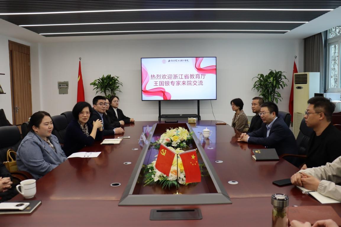 3月12日上午,浙江省教育厅二级调研员王国银教授一行来万象城指导工作,学院院长谢子静,副院长胡文超及教师代表参加座谈会,讲座由谢子静院长主持。