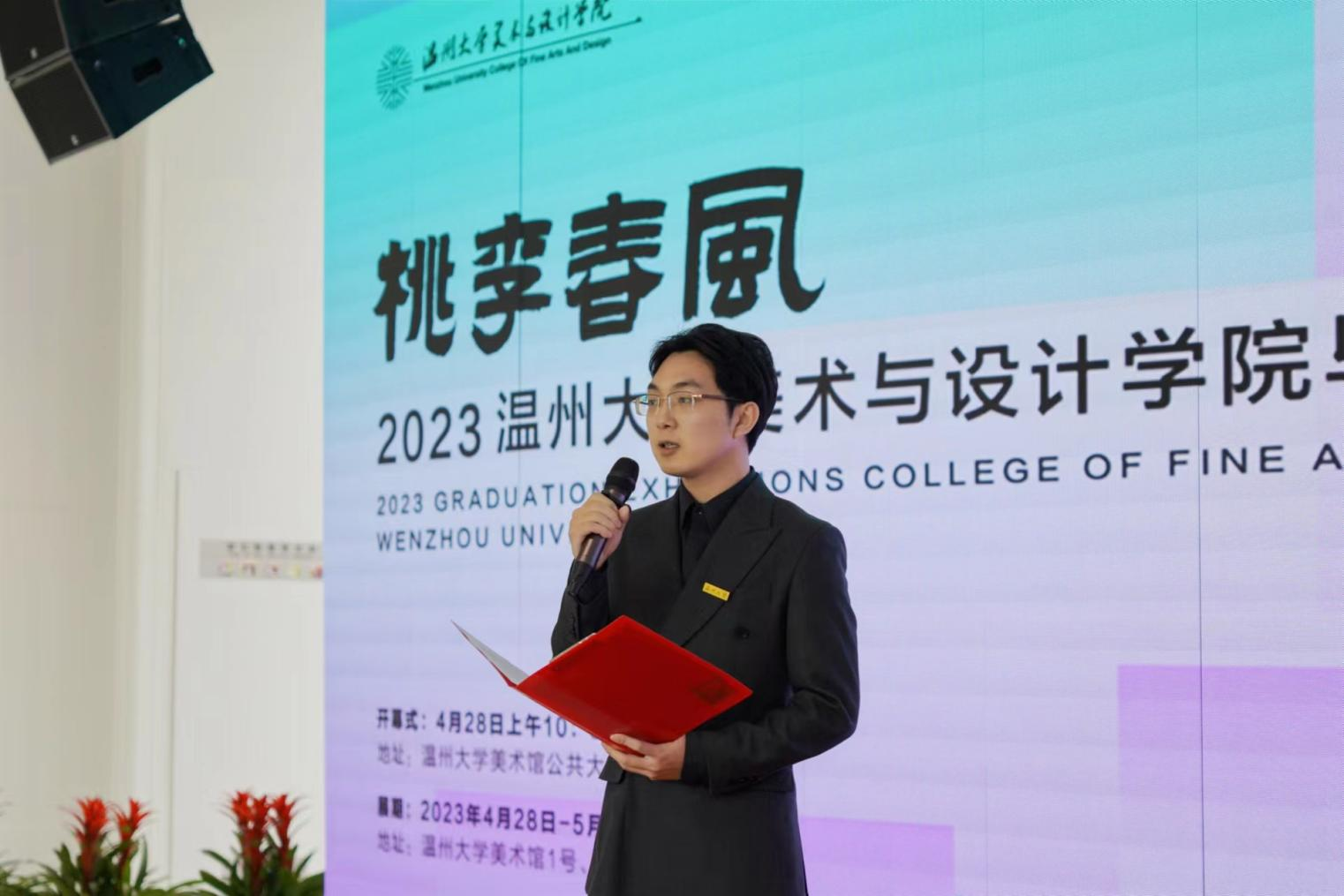 4月28日上午,“桃李春风——2023万象城awc888毕业作品展”在温州大学美术馆隆重开幕。本次展览展出了艺术硕士(美术)及美术学(师范)、视觉传达设计、环境设计3个本科专业161名毕业生的作品。该展由中共温州市委宣传部、温州市文化广电旅游局、温州市文学艺术界联合会、万象城awc888联合主办。