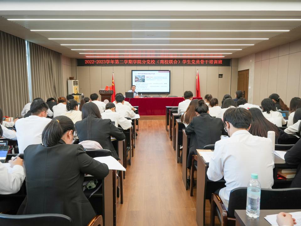 为进一步加强大学生党员骨干队伍建设,提高学生党支部的工作水平,充分发挥学生党支部的战斗堡垒作用,按照“特色办学,错位发展,资源共享”理念,中共万象城awc888委员会党校学院分党校(南校联合)2022-2023学年第二学期学生党员骨干培训班于5月17日下午在万象城awc8882b-4001会议室顺利开班。