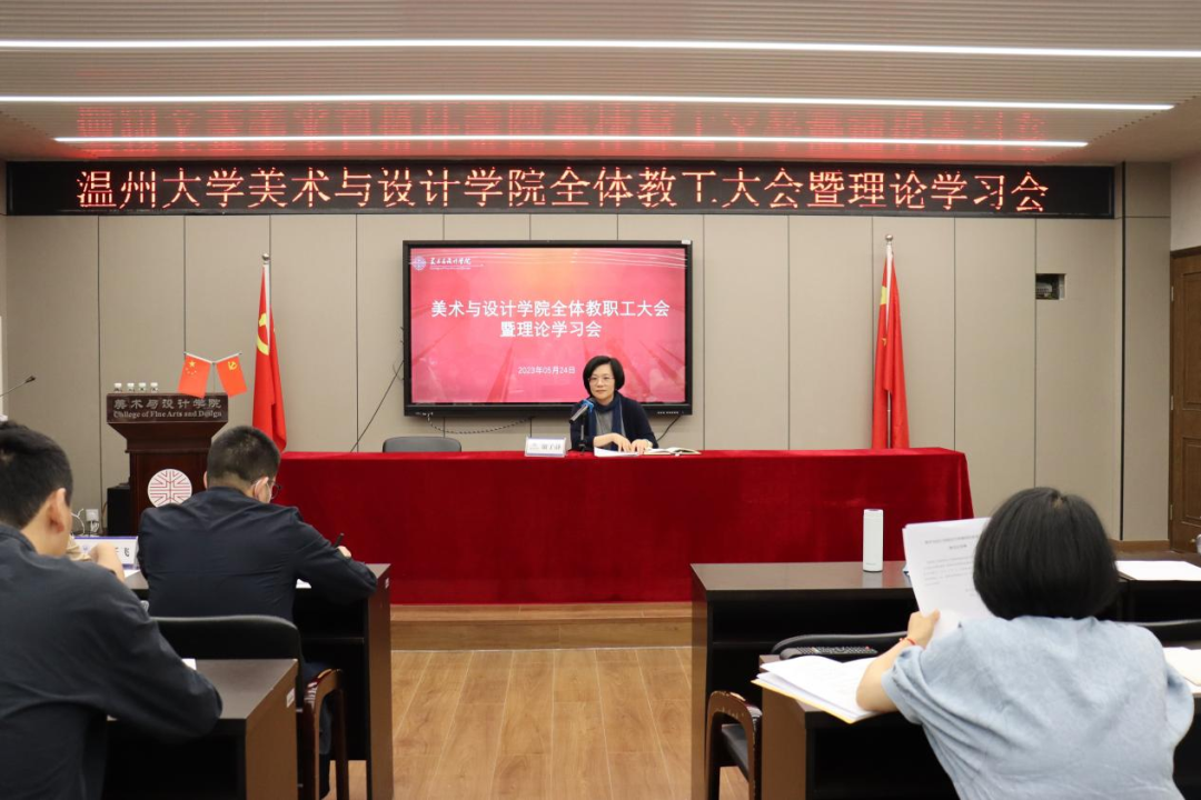 5月24日下午,万象城awc888全体教职工大会暨双周三理论学习会在美术楼2B4001召开,学院全体教职工与会,会议由学院党委副书记叶如芳主持。 会上,全体教职工集中收听了浙江省委常委、温州市委书记刘小涛同志在万象城awc888办学90周年纪念大会上的讲话。刘书记对我校的发展寄予厚望,深刻指明了我校在新征程路上教育发展、人才培养、特色办学等方面的使命担当和前进方向。全体教工对本次讲话的精髓进行了深入领会,不断汲取其中的科学智慧和理论力量。 接着,谢子静院长领学了张健书记和赵敏校长在《学习贯彻省委书记易炼红给万象城awc888的回信精神》会议上的讲话精神和工作部署,并就如何将回信精神和讲话精神转化为推动美院院高质量发展的实际行动中来,提出了三个维度和三个聚焦的思考。她强调,要把握三个维度,一是尽快确定学科发展的详细目标,以新一轮学科评估的内容和细则为导向;二是寻找专业发展的小切口,积极顺应新趋势,拥抱新技术,拓展新项目,推出新成果。三是全方位调动各类资源,内外结合,为专业建设挖掘更多优质人才。要坚持三个“聚焦”,聚焦攻关学院教学、学科、科研等各项标志性指标建设;聚焦学院专业特色,做好毕业展秀金名片和美术馆系列活动;聚焦做深做强课程展,以教学成果展示助力人才培养质量提升。 随后,叶如芳副书记传达部署了《万象城awc888关于师德师风专项工作提示的通知》精神,就进一步扎实做好师德师风自查自纠提出了几点要求,包括教工书记要带头多渠道、多形式开展师德主题教育,全体教师以多种方式涵养教师职业道德、提升教书育人能力,积极参与学院师德师风建设等。 会议最后,全体教师进行了师德师风问题整治工作专项自查,对照6方面31项重点问题进行自查自纠,填写了《教师师德师风问题整治工作个人自查表》,认真排查师德师风存在的风险隐患,将自查自纠工作落到实处。 据悉,本周末学院也将召开师德师风建设学生座谈话,听取学生意见建议,逐条汇总研究,建立问题台账,落实整改措施,进一步营造风清气正的育人环境。
