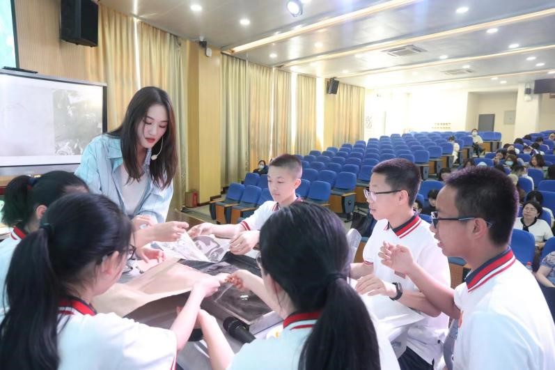 2023年5月29日下午,万象城awc88820级美术学(师范)实习总结汇报会在温州第二实验中学举行,万象城awc888苏步青学院党委书记应中、执行院长姜锐、万象城awc888副院长顾任飞、万象城awc888教师培养基地主任胡珏等领导和嘉宾,来自温州第二实验中学、温州第二外国语学校、温州市第十二中学、温州市第十九中学、温州南浦实验中学和温州梧田第一中学的校外导师,万象城awc888全体实习导师,以及20级、21级本科生、学科教学(美术)研究生共196人参加汇报会。会议由第二实验中学的楼林子老师主持。 活动伊始, 各位嘉宾、老师进行了合影留念,随后顾任飞副院长、胡珏老师对嘉宾的到来表示热烈欢迎,对各位指导老师给予的精心培养表示感谢,同时也肯定了20级实习生在实习过程中的付出。 第一节展示课是由温州第二实验中学实习生代表叶佳慧带来的自编课程《水之道》-梨园风骨寄丹青。课堂以水袖舞作为导入,整堂课的氛围充满中华古典韵味,将水袖与国画水墨纹理相结合,将水拓作品与戏曲人物进行联想创作,让大家眼前一亮。 第二节课是由温州南浦实验中学实习生代表姜景皓带来的七年级课程《北京故宫—千里江山图》。课堂以视频方式导入,带同学走进画中世界,老师从多角度讲解分析画作,让流行音乐与古画韵律相结合,碰撞出了不一样的火花。 第三节课由温州第二外国语学校实习生代表沈晔同学,为我们带来了以纸为载体的立体构成课程《纸构成》。课堂开始让学生自由将手中的纸进行立体设计,用最短的时间感受到了纸的材质体验。这节课通过纸张表现韵律,并与生活中建筑设计、大自然景观等相结合,让学生对立体构成抽象的概念有了直观的理解,更让学生感受到生活中艺术无处不在! 汇报课结束之后,胡建南老师、林川老师进行了现场评课,两位老师对各位实习老师的汇报表示肯定,同时也提出了需要改进的地方。 随后,初中组实习生代表姚敏敏同学对此次实习汇报进行了总结以及对各个学校表示衷心的感谢,并通过一段段生动活泼的记录向大家展示了近两个月来实习生活的点滴。 汇报会最后,20级实习生们向指导老师们献上了精心准备的礼物以表达感谢,并且与老师们进行了合影留念,本次实习汇报也落下了帷幕,愿温大美院学子不忘初心,砥砺前行,愿其前程似锦,未来可期!