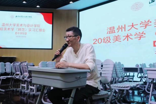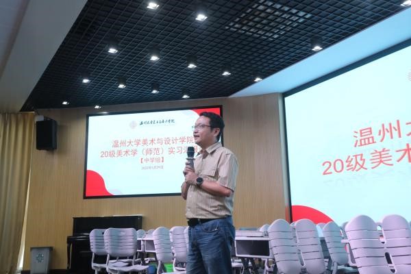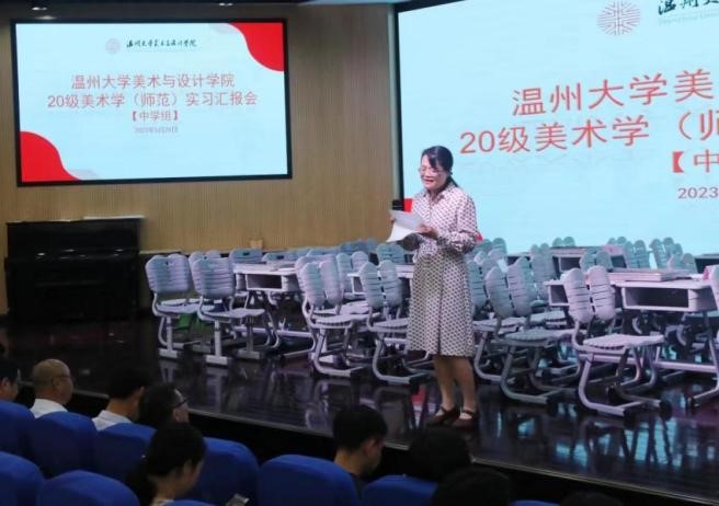 2023年5月29日下午,万象城awc88820级美术学(师范)实习总结汇报会在温州第二实验中学举行,万象城awc888苏步青学院党委书记应中、执行院长姜锐、万象城awc888副院长顾任飞、万象城awc888教师培养基地主任胡珏等领导和嘉宾,来自温州第二实验中学、温州第二外国语学校、温州市第十二中学、温州市第十九中学、温州南浦实验中学和温州梧田第一中学的校外导师,万象城awc888全体实习导师,以及20级、21级本科生、学科教学(美术)研究生共196人参加汇报会。会议由第二实验中学的楼林子老师主持。