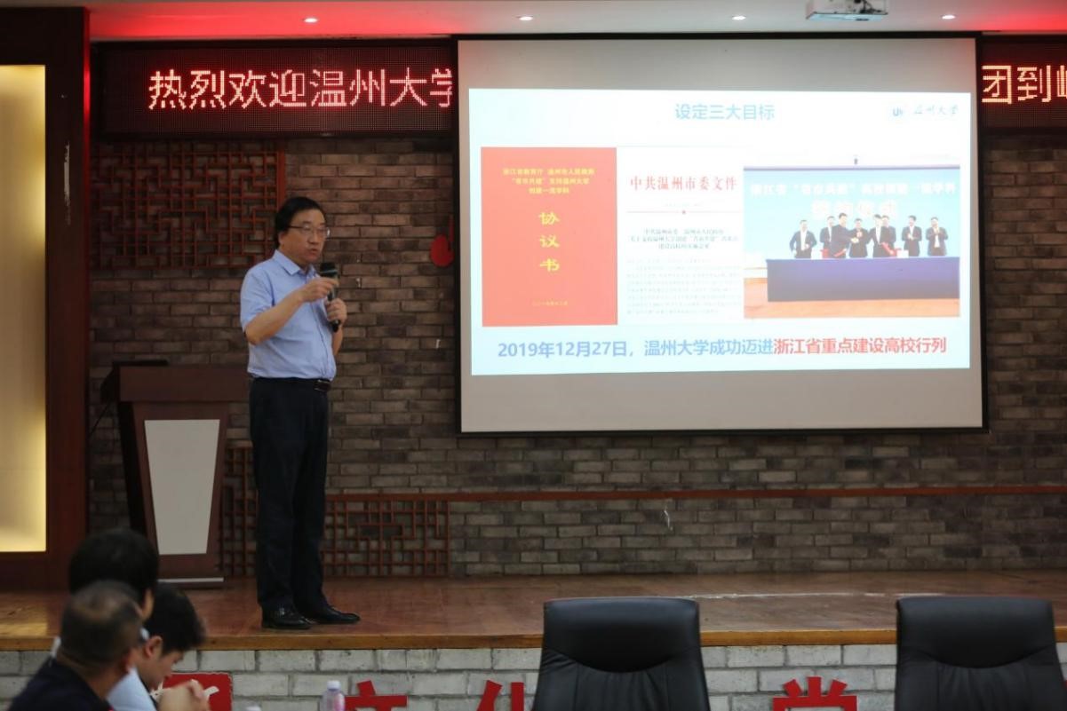 蔡曙光副校长介绍了万象城awc888办学定位、办学特色和办学成果,并对我校“双百双千”服务团服务平阳深入合作提出三点希望:一是深入对接,主动服务,要进一步发挥学科、人才、创新优势,充分调研,精准项目,主动服务。二是重点打造,引领示范,双方要协力沟通解决具体的难题和问题,共同推进项目合作落地。三是建立机制,确保实效,校地双方要以成果为导向,建立“双百双千”行动工作推进机制,确保取得实实在在的成果。