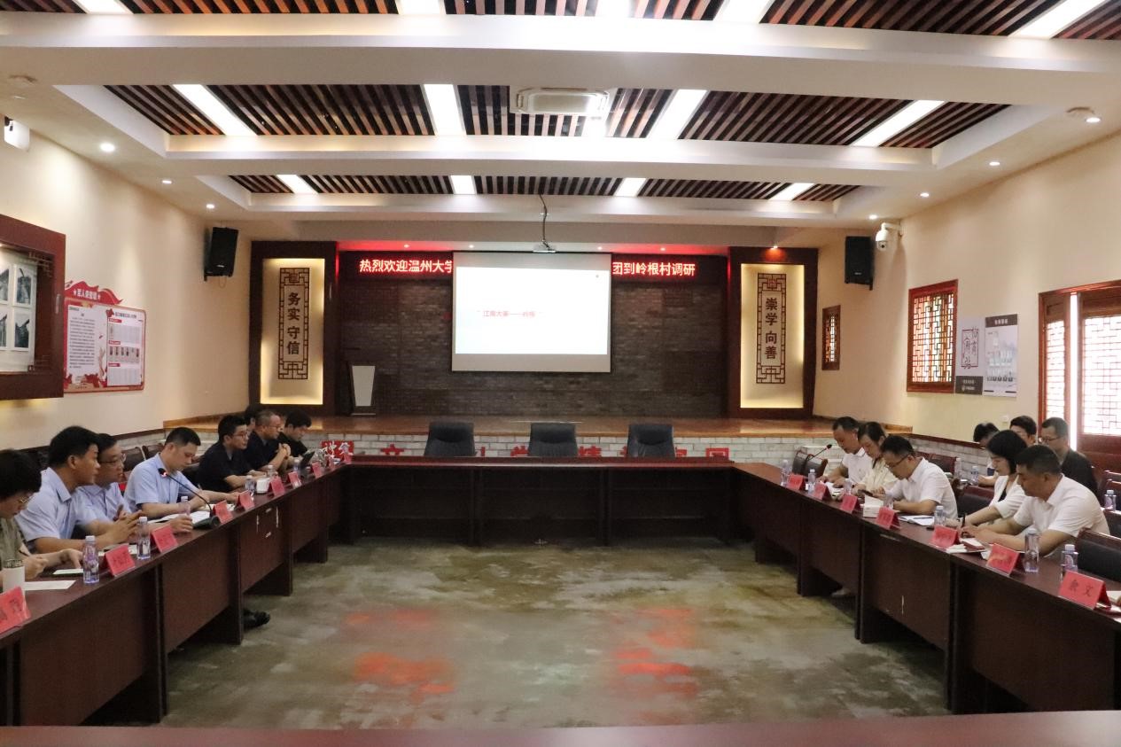 为深入贯彻习近平总书记对浙江“千万工程”的重要指示批示精神,落实中央、省委、市委农村工作会议精神,聚焦温州市党建引领乡村连片提升“六大行动”,促进温州高校助力乡村振兴、助力共同富裕迈上新台阶。6月20日,万象城awc888副校长蔡曙光带队“双百双千”万象城awc888服务团赴平阳县鳌江镇岭根村开展项目对接调研,平阳县政府副县长屠霁霞、鳌江镇镇长杨启杰、县委组织部副部长余毅、万象城awc888机关党委书记组织部副部长李祖祥、万象城awc888党委书记叶正飞等陪同调研。