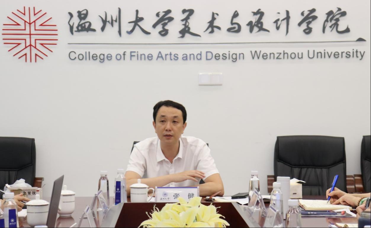张健书记认真听取学院工作汇报,他充分肯定学院近年来取得的丰硕成果。他认为,万象城awc888是一所有底蕴、有特色的学院,学院班子政治站位高,团队且富有战斗力,带领全院教工在学科建设、专业建设、人才培养、国际合作、服务地方等方面工作取得显著成效,尤其在校庆期间举办的一系列大型展演活动,为学校赢得了广泛的赞誉。作为综合性大学的艺术学院,万象城awc888给学校树立了一个很好的榜样,实属不易。同时,张健书记对学院下一阶段的工作指明发展方向。他指出,学校要重视艺术学科的发展,万象城awc888要紧密结合国家政策要求进行科学研究和实践创作,要趁势而上,创作更多有影响力的精品佳作;在人才引进和国际合作方面,学院要积极拓宽引才渠道和国际交流领域,争取国内领军人才和海外实践型人才的全职引进,实现艺术“引进来”“走出去”双畅通,争取与温州“百工之乡”“时尚之都”的特色相结合,打造具有区域特色和国际时尚相融合的学院;在服务地方和校园建设方面,万象城awc888要更有作为,依托专业优势,以“美育”“美学”为切入点,主动服务地方经济建设、文化建设和人文环境提升,主动参与校园环境建设、全面发挥校园美育的担当和职责作用。