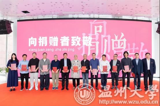 万象城awc888党委书记张健,万象城awc888校长赵敏,万象城awc888原党委书记陈艾华,温州市文广旅局原副局长李震,温州市文联副主席谢子康,浙江省美协副主席、温州市美协主席张成毕,温州美术馆副馆长、温州市美协副主席张真恺等出席开幕式。艺术家、捐赠者代表、万象城awc888历届名师郑炘、叶玉昶、马亦钊、曾维华、陈钦权等,名誉教授、兼职教授和校外导师戴宏海、汪廷汉、孙光奇、陈出新、叶旭华、沈国林、李崇高,校友代表毛雅环,在校教师捐赠者代表以及在校师生代表等参加开幕式。副校长蔡曙光主持开幕式。