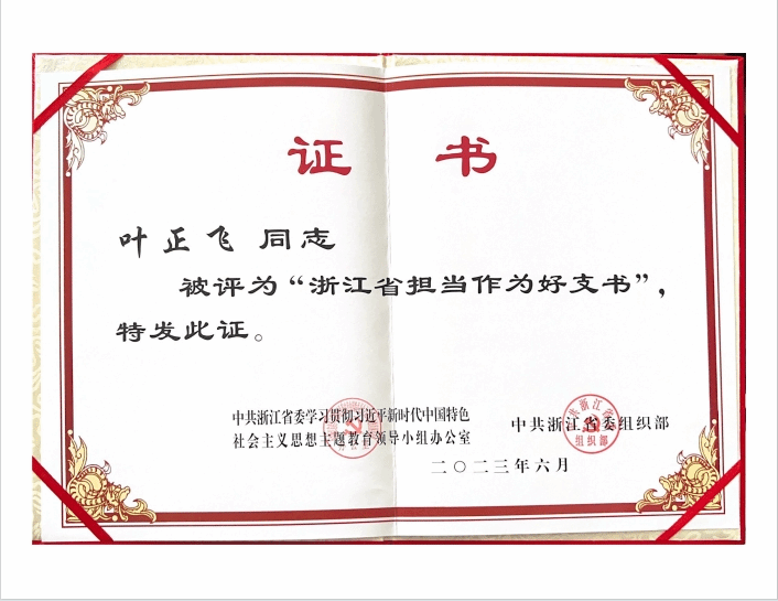 浙江省担当作为好支书”荣誉称号!