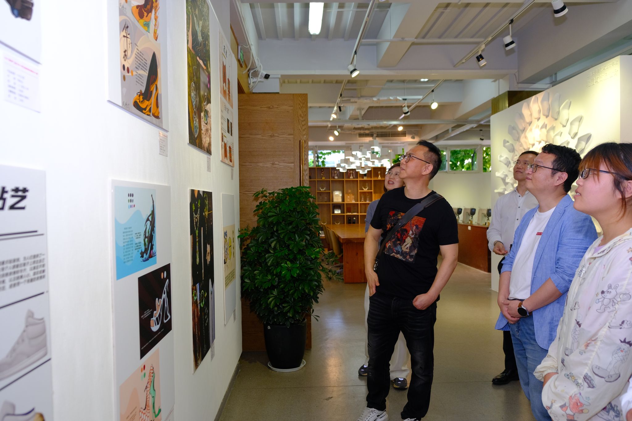 仪式结束后,刘军校友参观了2024“鑫诺杯”大学生服装服饰创意设计大赛作品展。该赛事自1月启动以来,共征集作品358件,其中产品组100件,创意组183件,AI组75件。刘军校友对本次大赛的组织者和参赛者们表示衷心的感谢和祝贺。他表示,这样的设计大赛不仅为学生们提供了一个展示才华的平台,更为整个服装服饰行业注入了新的活力和创意。他鼓励学生们积极投身于这个充满挑战和机遇的行业,共同推动服装服饰行业的繁荣发展。