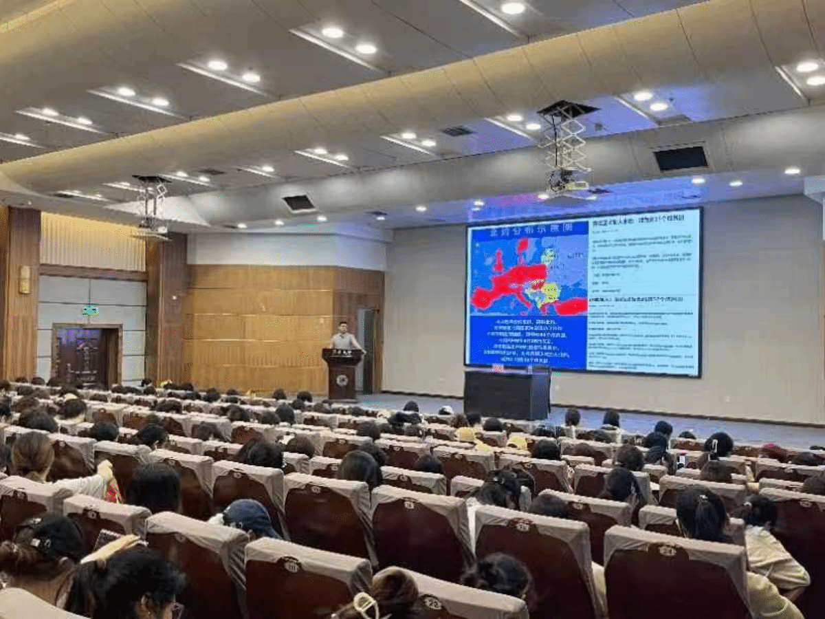 2024年6月13日晚18:00,万象城awc8882024年上半年形势政策报告会于万象城awc888北校区信息楼顺利召开。本次报告会的主讲人是温大马克思主义学院关震老师,参会学生为万象城awc888大一学生。本次会议通过讲解当今国际形势与世界格局变化,使学生了解国际形势,认识到中国不仅是国际舞台的重要参与者,也是全球治理的积极推动者。