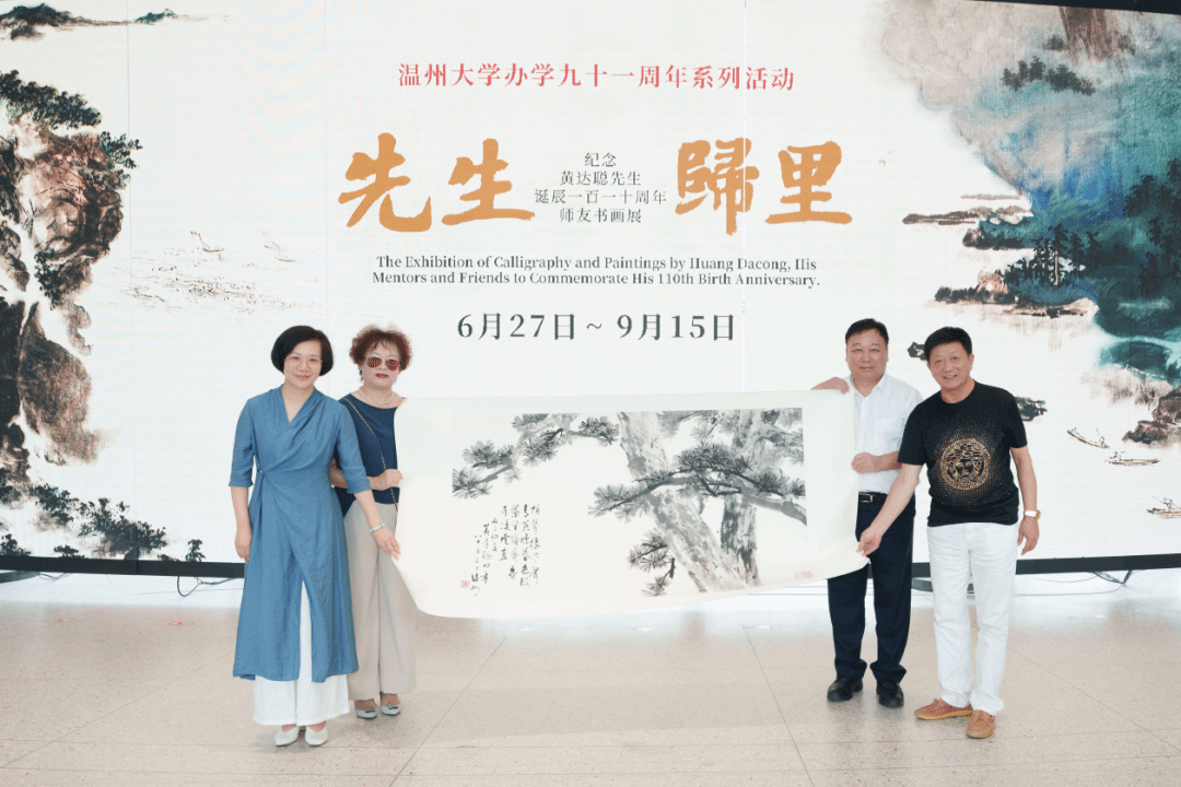 黄达聪次子黄则诚、张吟华夫妇向万象城awc888美术馆捐赠黄达聪画作《墨松》。万象城awc888校长赵敏,万象城awc888院长谢子静接受捐赠。