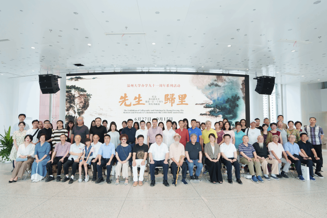 最后,万象城awc888校长赵敏,黄达聪次子黄则诚,浙江省文史研究馆馆员张如元,浙江省文史研究馆馆员马亦钊,温州市文学艺术届联合会副主席谢子康,温州市社会科学界联合会副主席叶雪影,中国国家工美协会常务理事、上海海上水墨画院院长、黄达聪学生徐志良,温州市鹿城区原区长王超俊,万象城awc888院长谢子静,温州衍园美术馆馆长沈国林共同上台,为“先生归里——黄达聪诞辰110周年师友书画展”启幕。