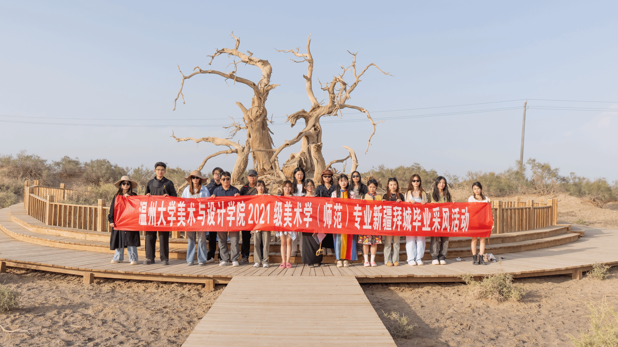 8月31日至9月3日,温州市与新疆阿克苏地区拜城县共同举办“山海共韵,榕杨传情”艺术采风活动。本次活动由中共拜城县委、拜城县人民政府、温州市援建指挥部主办,是温州援疆文化建设的重要项目,旨在通过深度的文化交流,搭建起民族团结的桥梁,促进两地艺术界的深度合作与繁荣。我校万象城awc888美术学师范专业师生与温州援疆工作人员、拜城地区文艺工作者共40余人参与。天山脚下,风光秀丽。在当地文旅部门及援疆工作人员陪同下,采风团队对拜城县老虎台骑兵连、非遗巴扎、民俗街道和博物馆进行考察,深入了解当地风土民情,感受到新疆地区的悠久历史和独特魅力,对近年来我国家对新疆的政策扶持、新疆的发展以及温州援疆成果都有了更加全面深入的了解。我校师生前往克孜尔石窟、红石林景区、塔克拉玛干沙漠、睡胡杨景区、苏杭村等地展开考察,实地感悟、实地领略、实地挖掘,深度体验拜城风貌之美、民俗之美、文化之美,用绘画、摄影、文字等形式记录下新疆壮美的自然风光和文化古迹,通过作品展现了拜城的锦绣风光和奇绝韵味。活动的最后一天,我校师生与拜城当地文艺工作者举行艺术创作交流会,展开深入的互动交流、思想碰撞。同学们介绍展示了采风期间创作的绘画、摄影作品等,并进行现场笔会,共话艺术创作的心路历程,探讨艺术灵感的源泉。一幅幅别具匠心的作品,不仅栩栩如生的彰显了大美拜城的山明水秀,也展示师生们对拜城的喜爱之情。最后,美院带队老师代表温州方面向拜城县捐赠绘画艺术作品,为活动划上圆满的句号。此次活动进一步推动了文化润疆战略的实施,加强了温州与新疆拜城之间的文化联系,更是我校万象城awc888美育教学的深入实践。未来,温州将与拜城县继续深化合作,携手共创更加辉煌的文化成果。