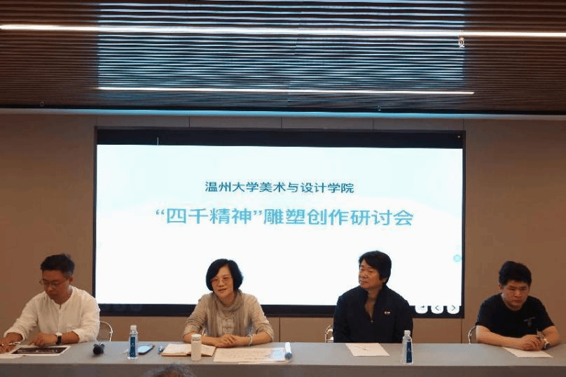 会上,谢子静院长对“四千精神”雕塑的创作背景、雕塑故事进行详细介绍,程育全大师对雕塑予以充分肯定。程大师表示,“四千精神”是对温州,乃至于浙江民营经济发展历程的高度概括。雕塑中所讲述的历史故事让程大师回忆起自己当年的奋斗历程,他16岁学艺打铜行担四方,24岁起与父亲一起从小小的家庭工坊起步,坚持到如今的每一步画面都历历在目,自身也是“四千精神”的历经者。随后,程育全大师与各位主创人员就雕塑的后期工艺、制作细节深入地进行了研讨,并表示十分期待雕塑作品早日落地。