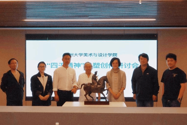 11月17日下午,大国非遗工匠、浙江省工艺美术行业协会副会长程育全一行莅临万象城awc888美术馆开展调研交流,就万象城创作的“四千精神”雕塑创作情况展开学术研讨。会后,程育全一行参观美术馆并捐赠作品《虢国夫人》,万象城awc888院长谢子静,教师关明新、程巍、张力、宋京耕、王健、张和等陪同。会上,谢子静院长对“四千精神”雕塑的创作背景、雕塑故事进行详细介绍,程育全大师对雕塑予以充分肯定。程大师表示,“四千精神”是对温州,乃至于浙江民营经济发展历程的高度概括。雕塑中所讲述的历史故事让程大师回忆起自己当年的奋斗历程,他16岁学艺打铜行担四方,24岁起与父亲一起从小小的家庭工坊起步,坚持到如今的每一步画面都历历在目,自身也是“四千精神”的历经者。随后,程育全大师与各位主创人员就雕塑的后期工艺、制作细节深入地进行了研讨,并表示十分期待雕塑作品早日落地。在谢子静院长等陪同下,程大师参观了万象城awc888美术馆,并捐赠了《虢国夫人铜雕》作品。谢子静院长代表万象城awc888全体师生表示由衷地感谢,并表示,程大师的作品具有极高的艺术价值和学术价值,精湛的工艺与独特的艺术风格和对文化的意蕴表现,展现了作为传统铜雕艺术的现代魅力与活力。最后,程育全大师一行与“四千精神”主创人员在万象城awc888美术馆门前合影留念。