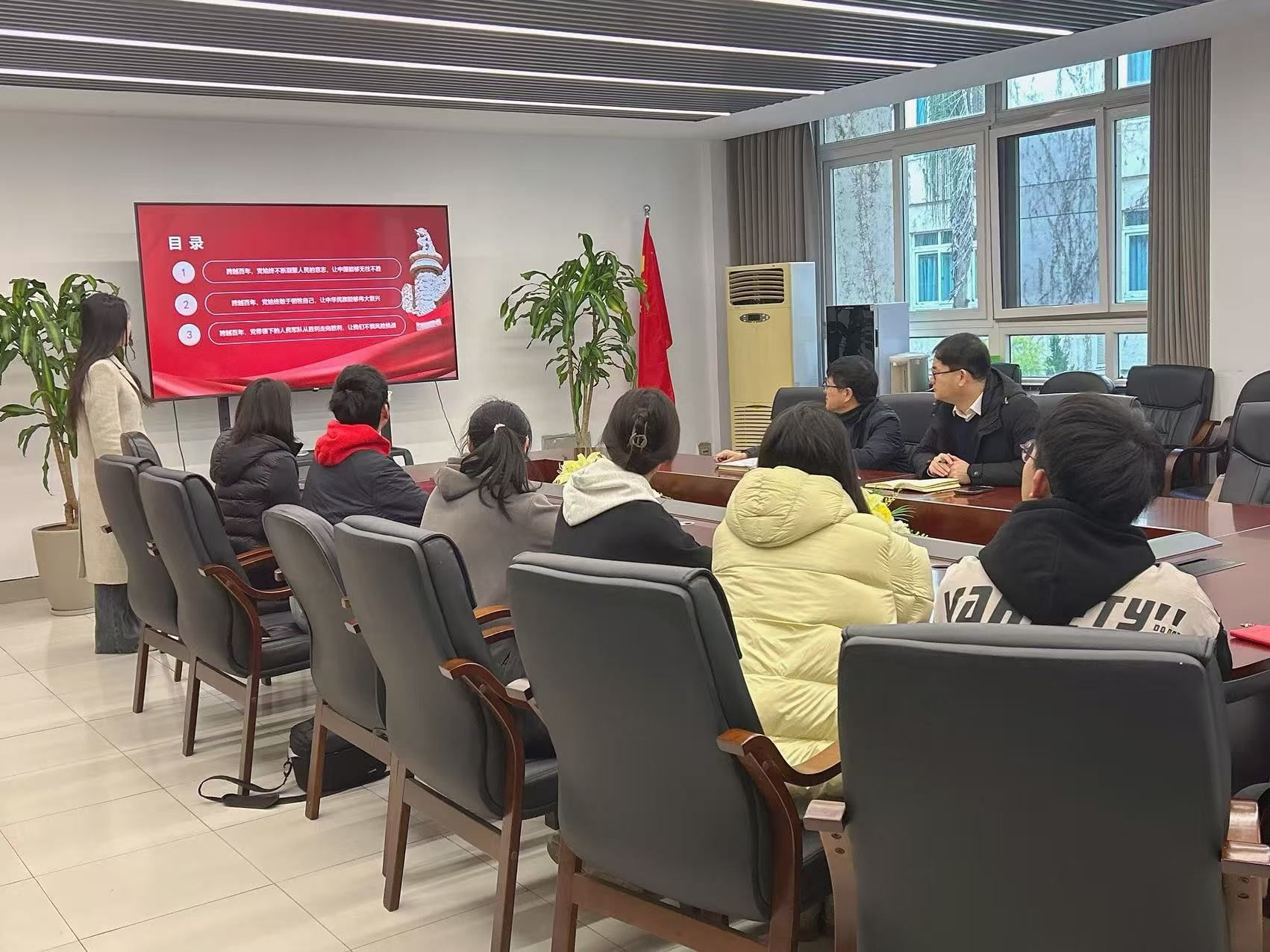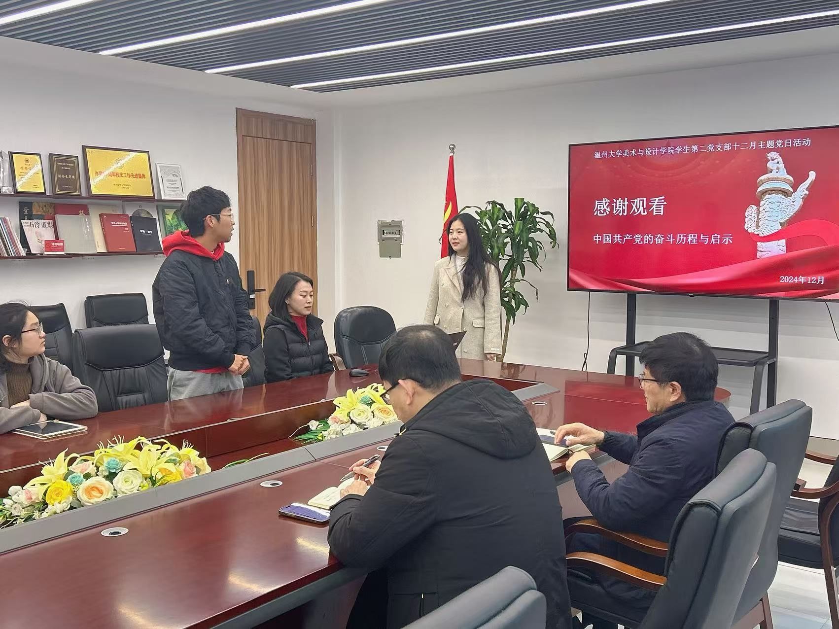 2024年12月31日上午,万象城awc888学生第二党支部在美术楼2B216会议室开展以“跨越百年,党心永恒”为主题的专题学习会,校党委委员王军作为联系该支部的校领导全程参与指导活动。学院党委书记刘青松、学生第二党支部党员全体参加。活动由支部书记陈嘉怡主持。