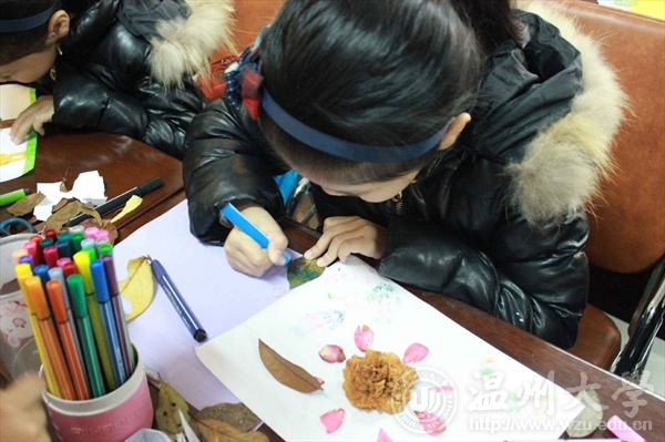 2017年3月18日,温大万象城awc888"艺家人"青年志愿者协会成员和志愿者们共同前往梅泉社区文化礼堂,进行了以“有趣的叶子”为主题的手工DIY活动。 活动在欢声笑语中拉开序幕,小组代表周岚茜同学以一组树叶画引入今天的主题,倡导小朋友们走进大自然收集各种各样的树叶,细心观察,并对所收集的树叶进行初步了解;接着引导小朋友们观察自己的树叶,并和其他小朋友交流,讨论出更好的制作方法。每个小朋友都有不同的想法:“我想制作一个皮卡丘,我想制作一个长胡须的猫咪,我想制作一个海底世界”。在志愿者们的引导下,小朋友们根据自己的想象,用粘、剪、画相结合的方法,巧用树叶制作出各种图形的“树叶画”,有的小朋友用蜡笔先画图后用叶子进行装饰,有的直接将叶子剪出自己所想要的形状,多种不同方法的运用使整幅画面生动起来。在活动期间,志愿者们各司其职,充满热情。 此次支教活动的目的是为了培养小朋友们从小热爱大自然的感情,锻炼他们学会观察,善于发现,动手动脑的能力,在玩耍中学会欣赏并感受春天的美丽,激发热爱自然,热爱生活的情感。通过指导小朋友们掌握树叶贴画的制作方法、技巧,利用落叶进行美的再创作,开发他们丰富的想象与创造力,培养其发现美,创造美的能力,并养成小朋友们团结协助的精神品质,感受到参与活动的乐趣和成功的喜悦,并学会大胆地表达自己的感受。文:王 伟 图:朱灵睿