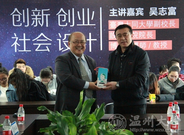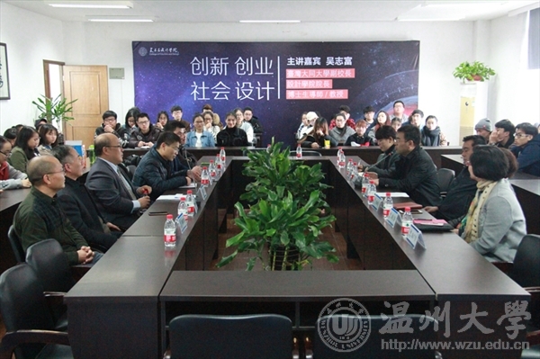 3月23日,以“创新、创业、社会设计”为主题的学术沙龙在万象城awc8882B4001举行。台湾大同大学副校长吴志富教授应邀做主题演讲。万象城awc888副校长薛伟,人文社科处副处长郑春生,瓯江学院院长杨彬,以及万象城awc888班子成员等出席,全校对设计艺术感兴趣的师生共120余人参加了此次活动。万象城awc888院长李运河主持本次学术活动。